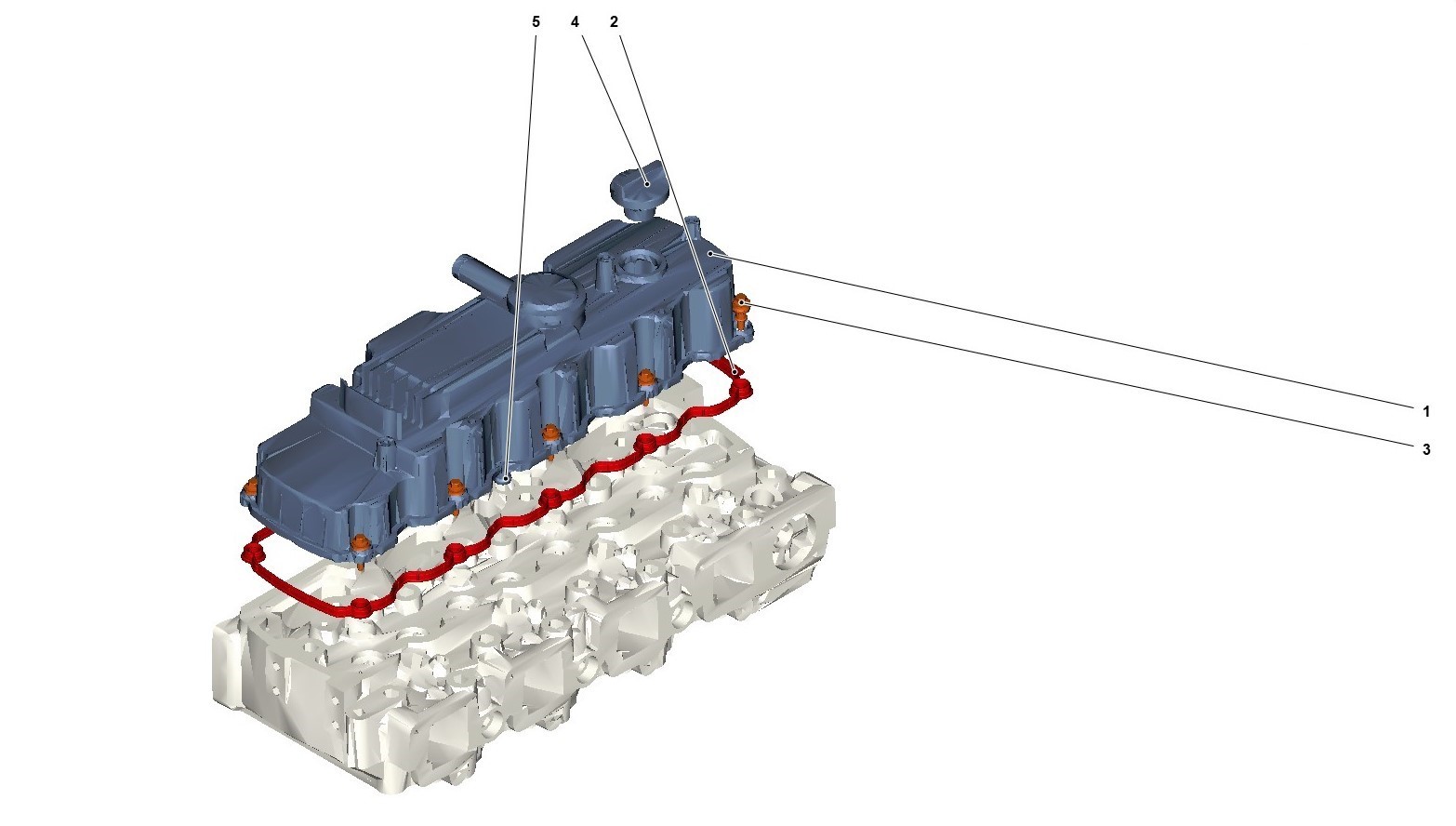 Cylinder head valve cover incl bolts, gasket TCD3.6L4