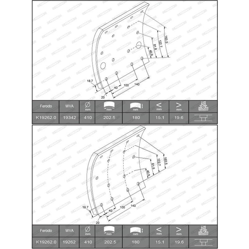 TATRA Brake lining set 180x410x20,4 (PERROT)