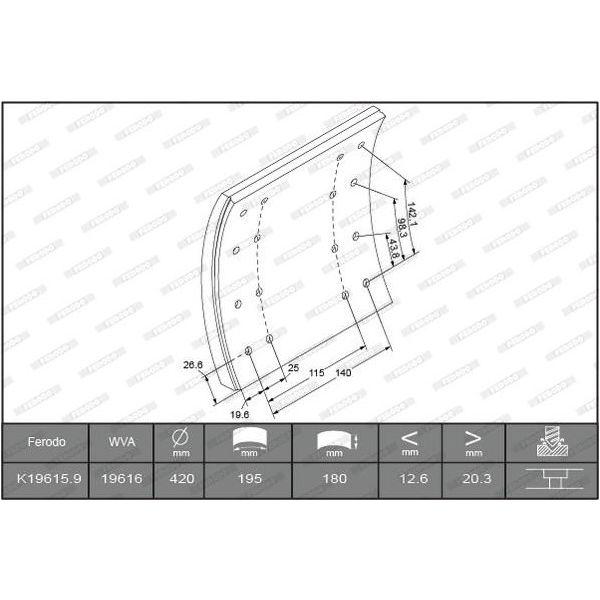OBLOŽENÍ BRZDOVÉ 180/200/21,5 FERODO LIAZ 300 - RÁBA